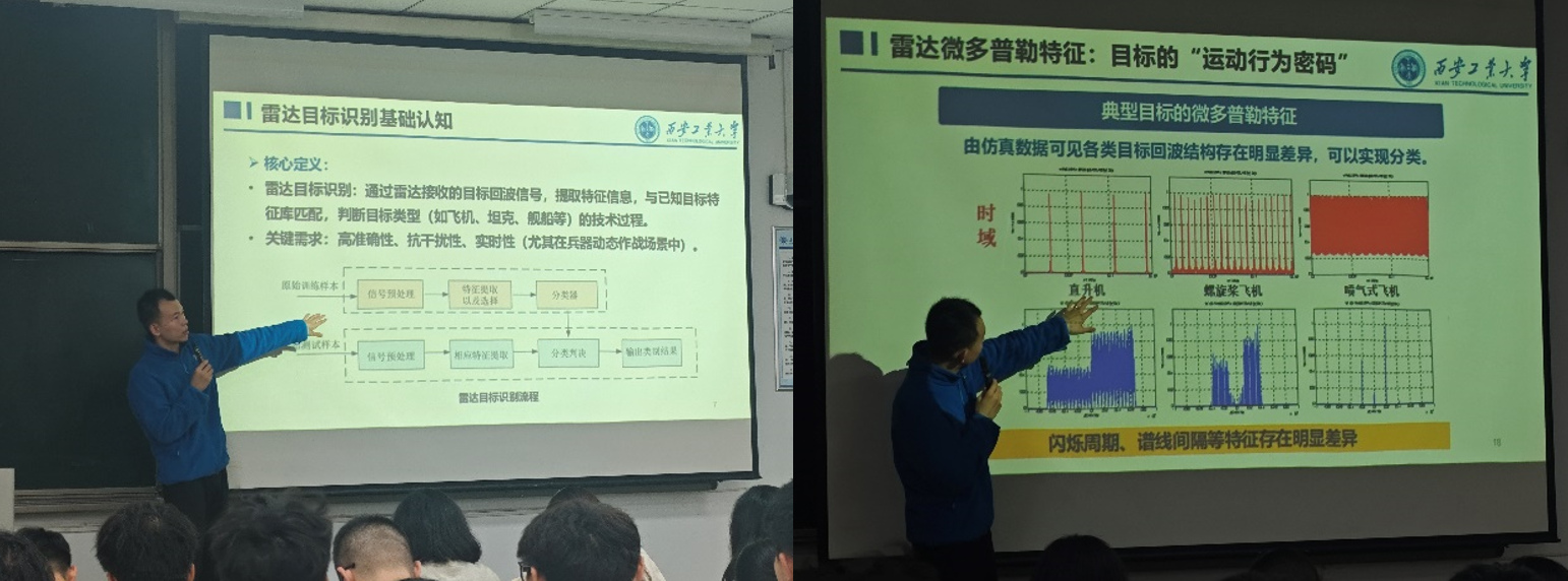 為幫助兵器學(xué)院一年級(jí)本科生明確專(zhuān)業(yè)學(xué)習(xí)和職業(yè)發(fā)展方向,增強(qiáng)專(zhuān)業(yè)認(rèn)知度與行業(yè)理解,2025年10月16日下午,我院青年教師夏子恒在教1-303為大一新生開(kāi)展了一場(chǎng)題為“大學(xué)生職業(yè)生涯規(guī)劃暨雷達(dá)目標(biāo)識(shí)別概述”專(zhuān)題講座。