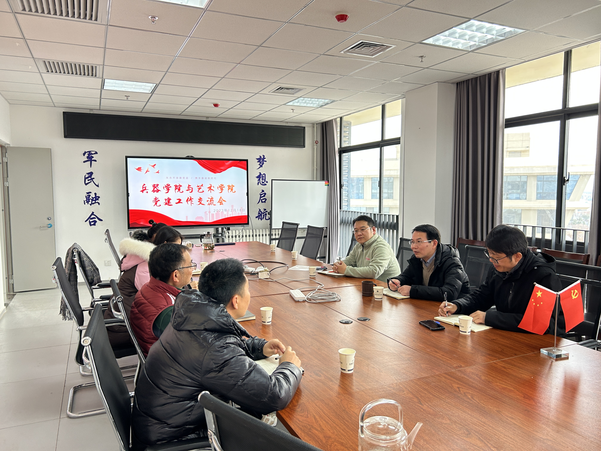 2023年12月18日下午2:30分,兵器科學(xué)與技術(shù)學(xué)院黨委書記蔡長龍、黨委組織委員陳丁、輔導(dǎo)員王國棟與來訪的藝術(shù)與傳媒學(xué)院黨委書記周著一行四人與在兵器學(xué)院8-615會議開展兩院黨建工作交流。