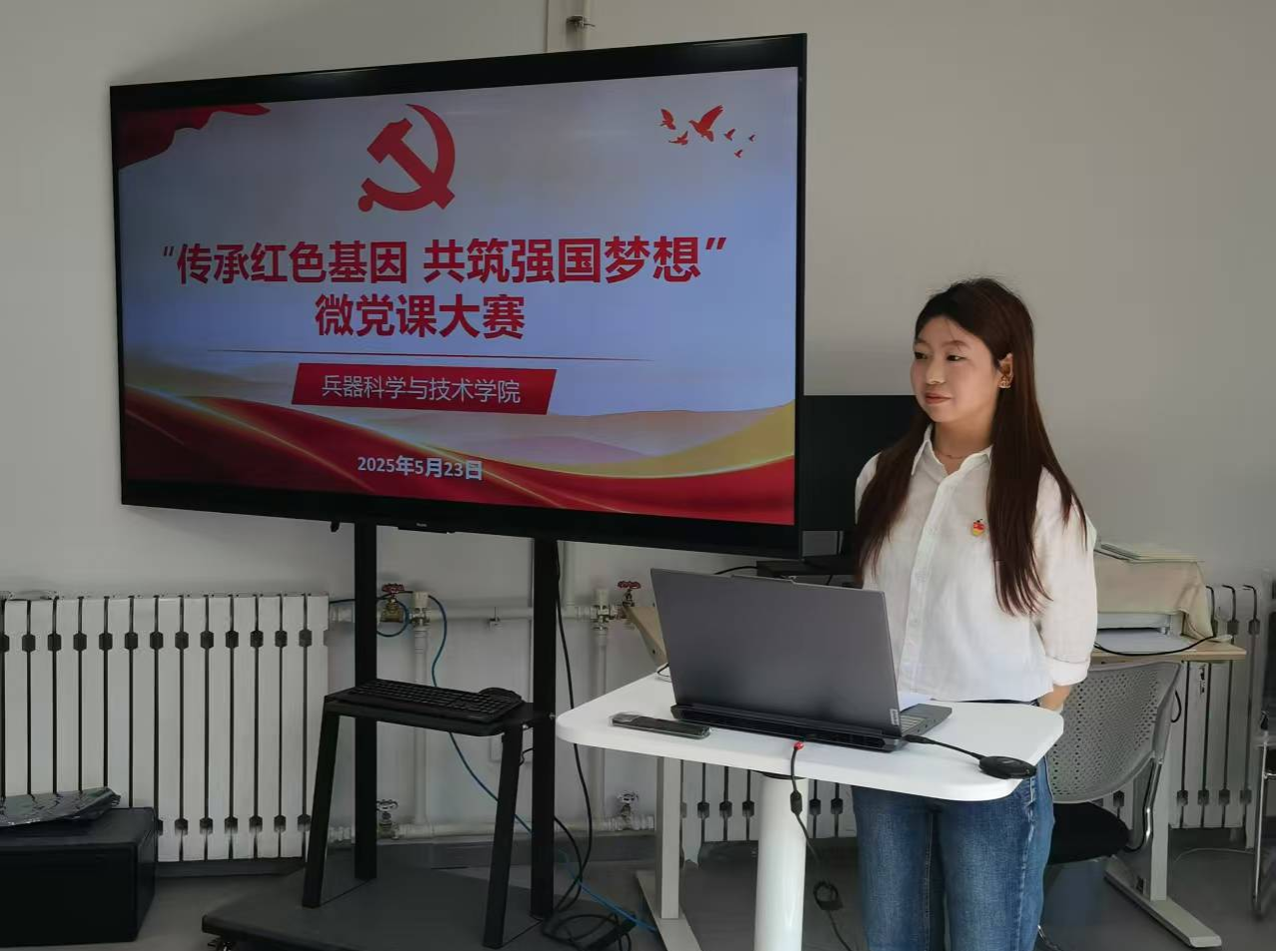 2025年5月23日下午,兵器學(xué)院在教8-413教室舉辦以“傳承紅色基因,共筑強國夢想”主題微黨課比賽。兵器學(xué)院黨委副書記梁偉檣、院黨委組織員陳丁、馬克思主義學(xué)院王小平三位老師應(yīng)邀擔(dān)任本次賽事評委。兵器科學(xué)與技術(shù)碩士生黨支部副書記陳漂洋主持本次比賽。