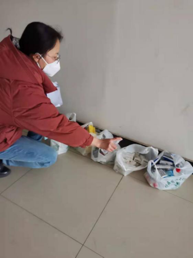 但她不懼艱難,迅速建立樓層學(xué)生信息管理系統(tǒng),挑選得力志愿者,迅速掌握管理樓層的學(xué)生基礎(chǔ)信息,有條不紊的開(kāi)展各項(xiàng)工作。學(xué)生一個(gè)電話(huà)、一個(gè)信息,她就立馬到場(chǎng),她的口頭禪就是“有事隨時(shí)找我”。隨著時(shí)間的推移,需要生活用品、身體不適需要購(gòu)藥、防疫物資需要補(bǔ)充、學(xué)生心情不穩(wěn)等各種問(wèn)題都冒了出來(lái),此時(shí)的田老師就像孩子們親愛(ài)的“家長(zhǎng)”,穿梭在公寓的走廊、宿舍、學(xué)院和防疫辦,親力親為,給學(xué)生配備分發(fā)生活和防疫物資、宣傳防疫知識(shí)、采購(gòu)緊急常用藥、與學(xué)生談心問(wèn)候,組織學(xué)生定期測(cè)核酸,讓學(xué)生在這段特殊時(shí)期感受到來(lái)自學(xué)校、學(xué)院、老師的關(guān)懷,學(xué)生們親切的稱(chēng)她“田姐”。