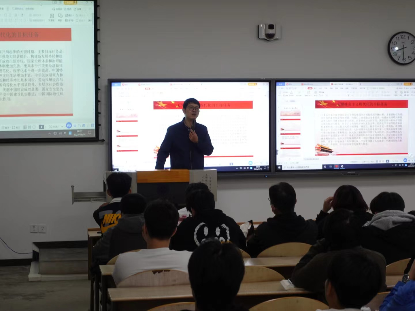 11月14日晚,輔導(dǎo)員王國棟在教二樓104教室召開兵器科學(xué)與技術(shù)學(xué)院年級大會。會議上,王老師由淺入深,從班級教育到黨的二十大,層層遞進為大家解讀人生的選擇與價值。