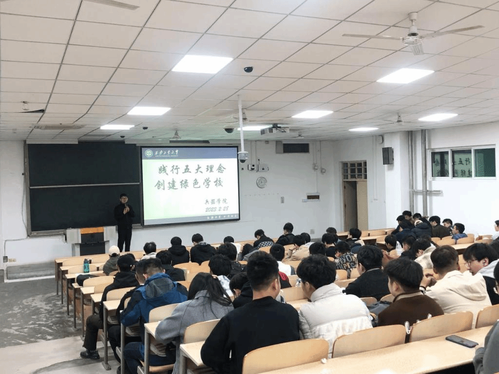 此次動(dòng)員會(huì)由我院輔導(dǎo)員王國(guó)棟老師主講,兵器學(xué)院全體研究生和本科生參加。王老師從創(chuàng)建綠色學(xué)校背景、意義、主要內(nèi)容及具體行動(dòng)多方面講解,同時(shí)向本院師生提出倡議: