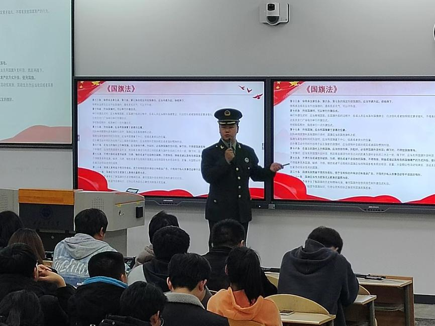 在此次講座中,校大學生軍事協(xié)會為同學們講解了軍事科技相關理論知識,強調(diào)國家安全的重要性,保護家國安全、保守國家秘密是每個中華人民共和國公民的義務,對于身為兵工院校的學生,更應該永遠把國家放在心中第一位,并講解時下國際環(huán)境與中國自身情況。此外,校國旗護衛(wèi)隊為大家講解了《中華人民共和國憲法》中的《國旗法》,深刻講述中華人民共和國五星紅旗的莊嚴地位,以及國旗護衛(wèi)隊的光榮使命。