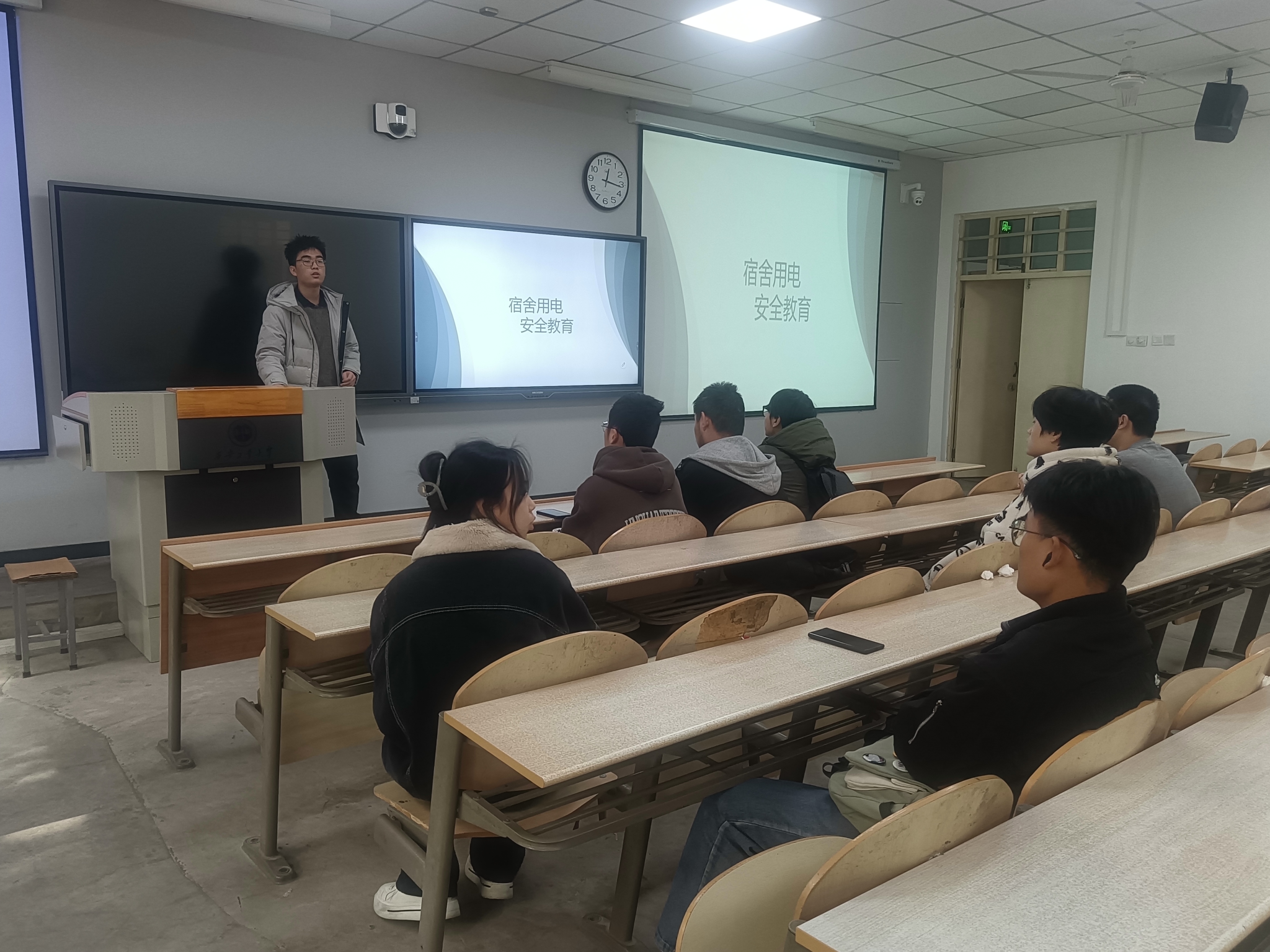 最后,各班長及團支書就宿舍用電問題做出說明,要求同學們在使用電器設備時,必須遵守相關的安全規(guī)定,如不得私拉亂接電線,不得在宿舍內(nèi)使用大功率電器等。