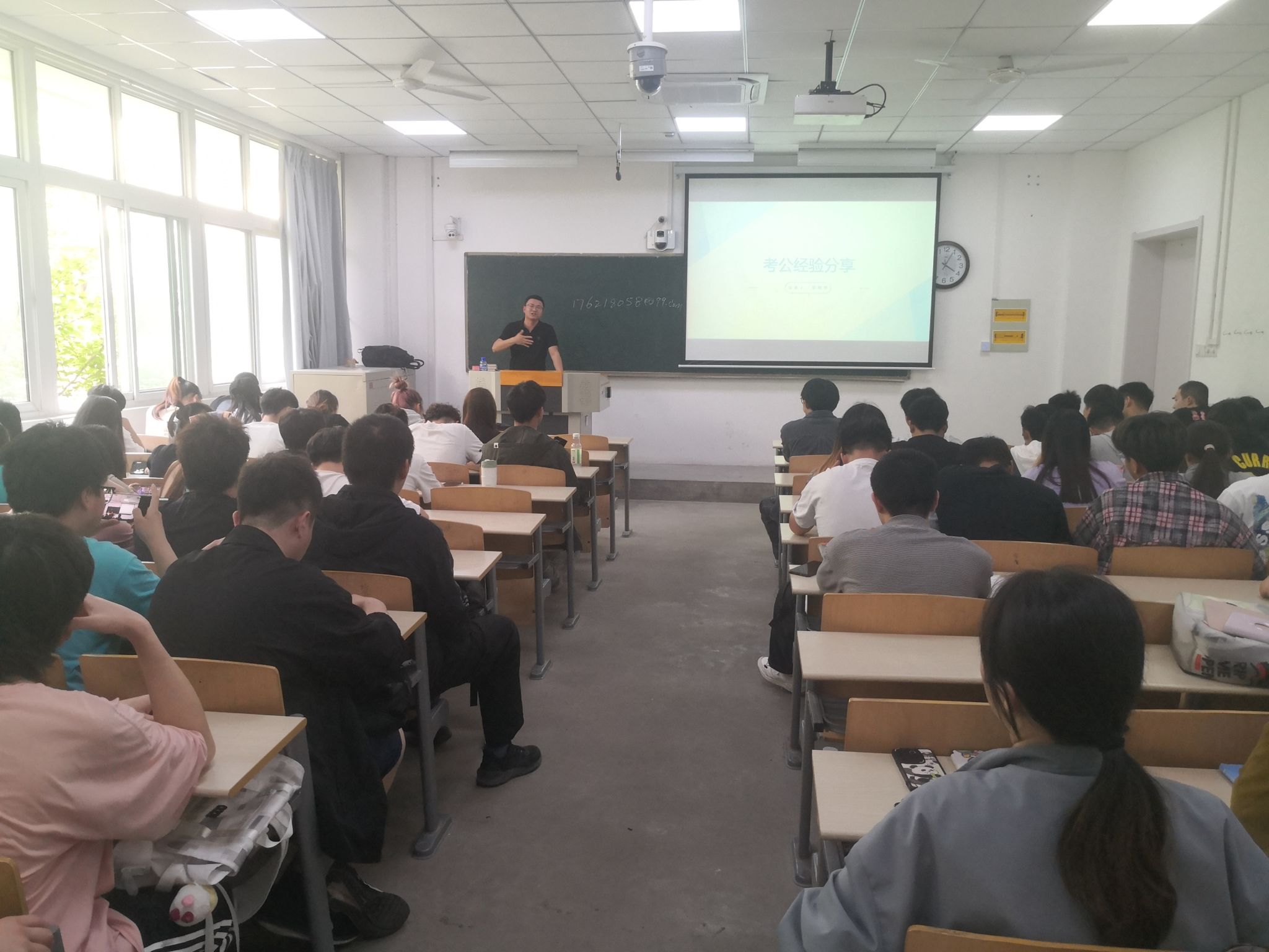 李樹學(xué)首先簡(jiǎn)單敘述了自己的考公經(jīng)歷,并和同學(xué)們分享了幾個(gè)考公中的常見誤區(qū)。又就考公是否需要報(bào)培訓(xùn)班給出了自己的建議,讓各位同學(xué)根據(jù)自己的實(shí)際情況進(jìn)行選擇。為了讓在座的同學(xué)們了解考公的題目類型,李樹學(xué)校友還準(zhǔn)備了一些考公的原題進(jìn)行講解。并在交流互動(dòng)環(huán)節(jié)傳授了一些自己的心得體會(huì),以幫助有意向的同學(xué)們更好的備戰(zhàn)考公。