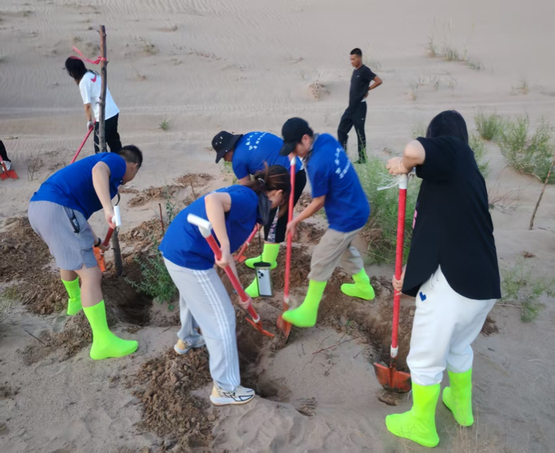 同時,大家也投身于沙漠衛(wèi)生治理,沿著林地周邊仔細撿拾塑料瓶、包裝袋等垃圾,將廢棄物集中收納處理,防止污染土地,用雙手為這片公益林筑起更潔凈的生態(tài)屏障。