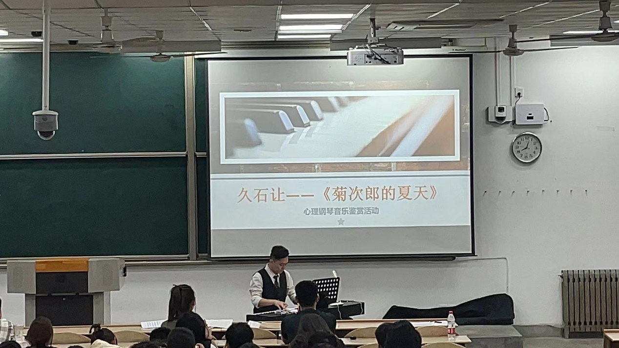 為了幫助同學(xué)們放松身心,緩解壓力,調(diào)節(jié)自我精神狀態(tài),同時(shí)幫助同學(xué)們樹(shù)立維護(hù)心理健康的意識(shí),以便在以后更好的學(xué)習(xí)和工作中擁有積極向上的健康心態(tài)。我院心理部在王國(guó)棟老師的指導(dǎo)下,由22級(jí)研究生暨心理委員李瀚岳表演,本科生和研究生一起參加的“琴聲悅耳,治愈心靈”心理鋼琴音樂(lè)鑒賞活動(dòng),于4月16日晚7點(diǎn)到9點(diǎn)在教一開(kāi)展。