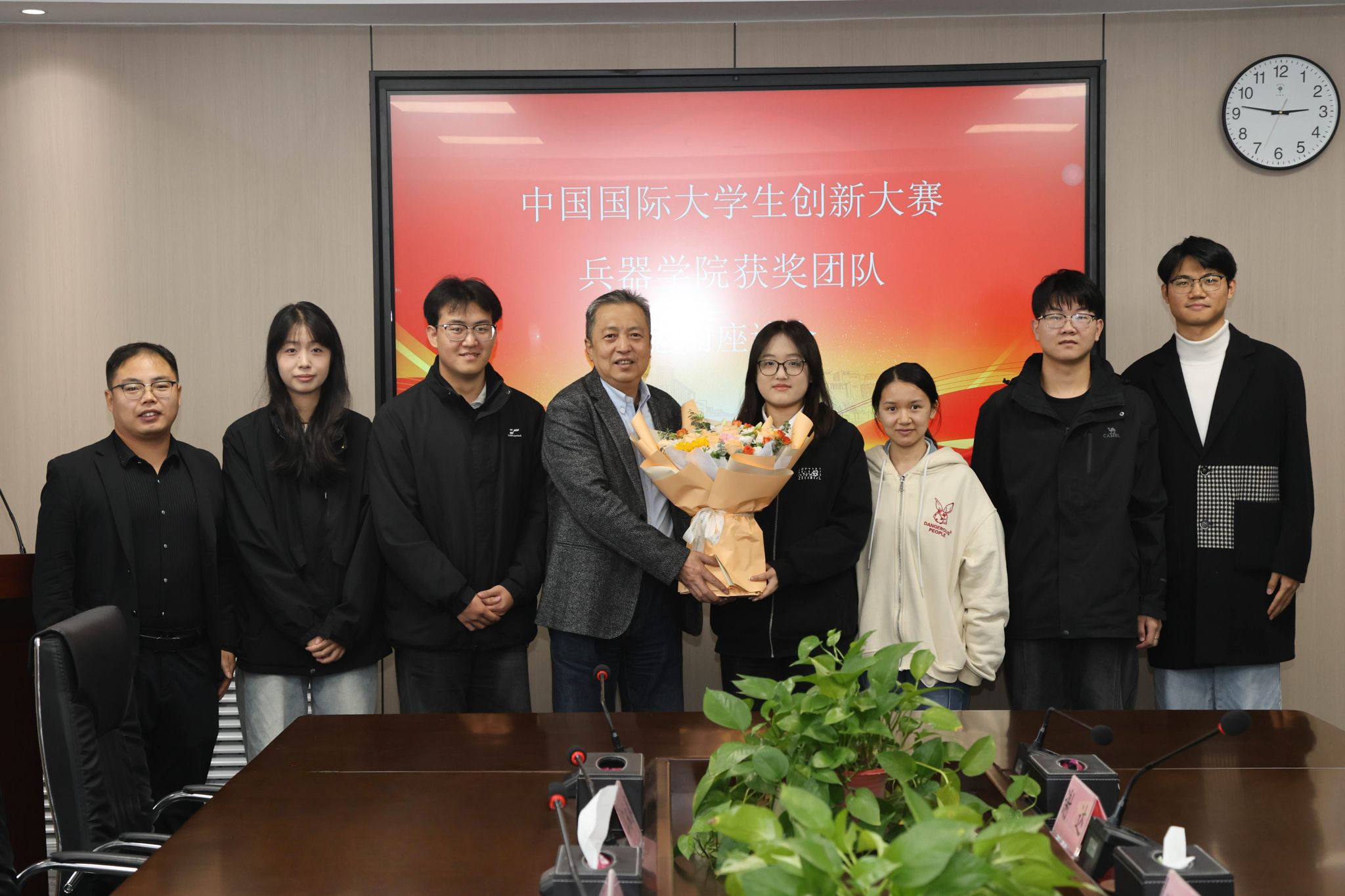 侯成義代表學(xué)校對(duì)團(tuán)隊(duì)表示慰問和祝賀。他指出,項(xiàng)目金獎(jiǎng)突破難能可貴,為學(xué)校師生樹立了榜樣,各相關(guān)部門認(rèn)真總結(jié)經(jīng)驗(yàn),加強(qiáng)協(xié)作,以學(xué)校目標(biāo)責(zé)任改革為契機(jī),建立相關(guān)績(jī)效評(píng)價(jià)機(jī)制,強(qiáng)化結(jié)果運(yùn)用,持續(xù)做好創(chuàng)新大賽后續(xù)策劃和組織工作,要以大賽為牽引,提升學(xué)校科創(chuàng)水平,做好拔尖人才培養(yǎng),提升創(chuàng)新型人才培養(yǎng)質(zhì)量。