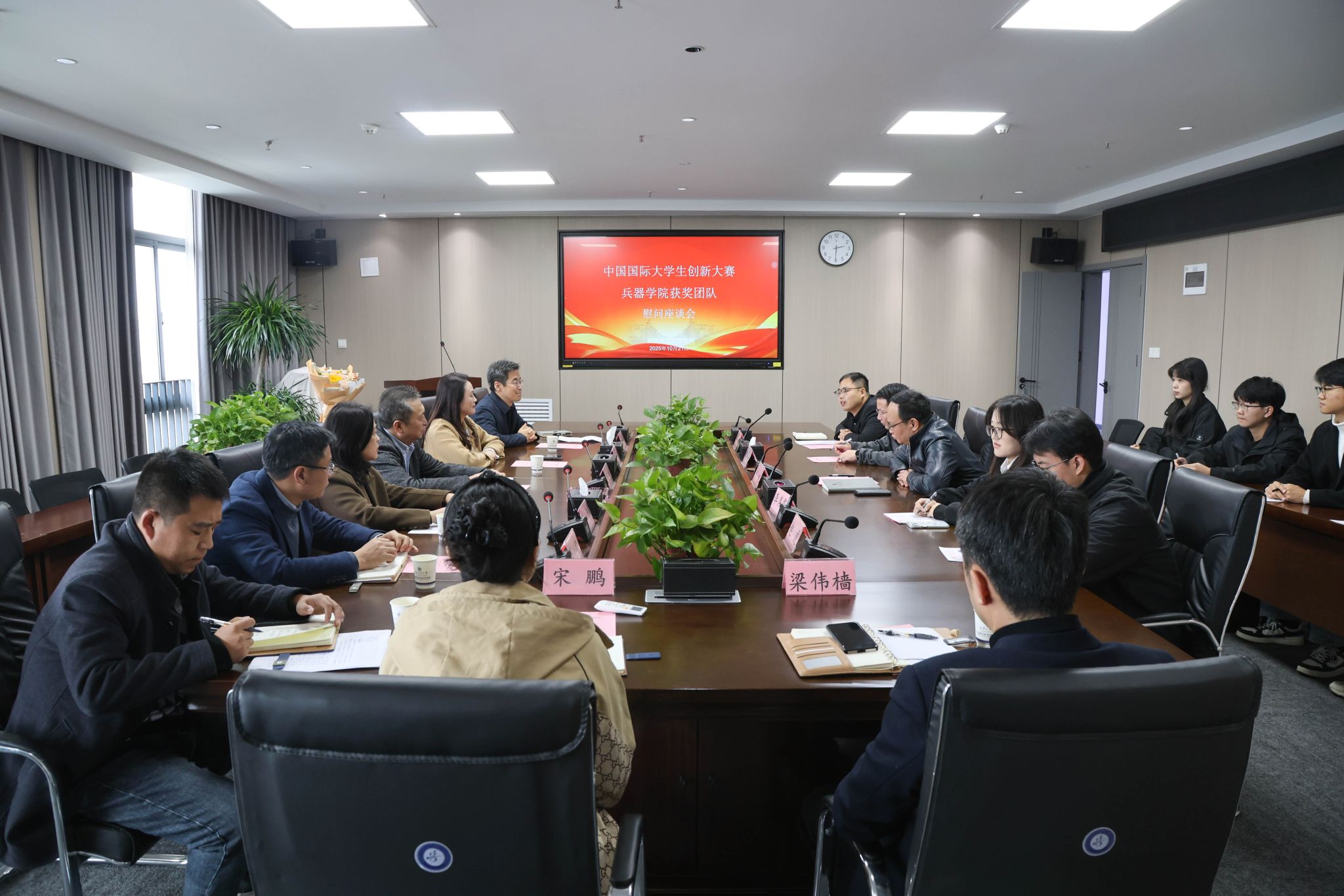 (本網(wǎng)訊)10月21日,校黨委書記侯成義、副校長(zhǎng)閆莉一行到兵器科學(xué)與技術(shù)學(xué)院慰問了在中國(guó)國(guó)際大學(xué)生創(chuàng)新大賽中獲得金獎(jiǎng)的項(xiàng)目團(tuán)隊(duì)成員,并與團(tuán)隊(duì)師生進(jìn)行了親切座談交流。