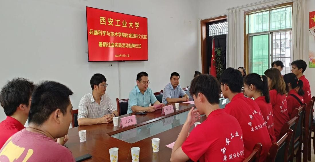 兵器學(xué)院院長助理陳丁、輔導(dǎo)員王國棟于2024年7月17日赴城固縣文化館進(jìn)行社會(huì)實(shí)踐掛牌儀式,參加此次掛牌儀式的有城固縣文化局局長周茂來、副局長孟凡一以及我院暑假社會(huì)實(shí)踐的學(xué)生們。