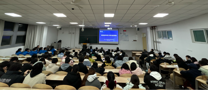 會(huì)議開始,胡良謀首先向大家介紹了本次交流會(huì)的目的就是要了解低空經(jīng)濟(jì)與無(wú)人機(jī)行業(yè)的發(fā)展,接著邀請(qǐng)胡金海為大家進(jìn)行低空經(jīng)濟(jì)發(fā)展的講解。胡金海先向同學(xué)們介紹了低空經(jīng)濟(jì)的相關(guān)知識(shí),使同學(xué)們對(duì)低空經(jīng)濟(jì)有了較為清晰的認(rèn)知。就低空經(jīng)濟(jì)的載體,胡金海展開了深度講解,從狹義和廣義兩個(gè)方面向同學(xué)們闡述了飛行汽車,并陳述了飛行汽車的的戰(zhàn)略發(fā)展方向。接著,胡金海以低空經(jīng)濟(jì)發(fā)展的歷史數(shù)據(jù),闡明了當(dāng)前全球低空經(jīng)濟(jì)發(fā)展的概況與格局。最后,胡金海結(jié)合中外的低空經(jīng)濟(jì)發(fā)展現(xiàn)狀與政策,向同學(xué)們說(shuō)明了當(dāng)前低空經(jīng)濟(jì)發(fā)展的前景。