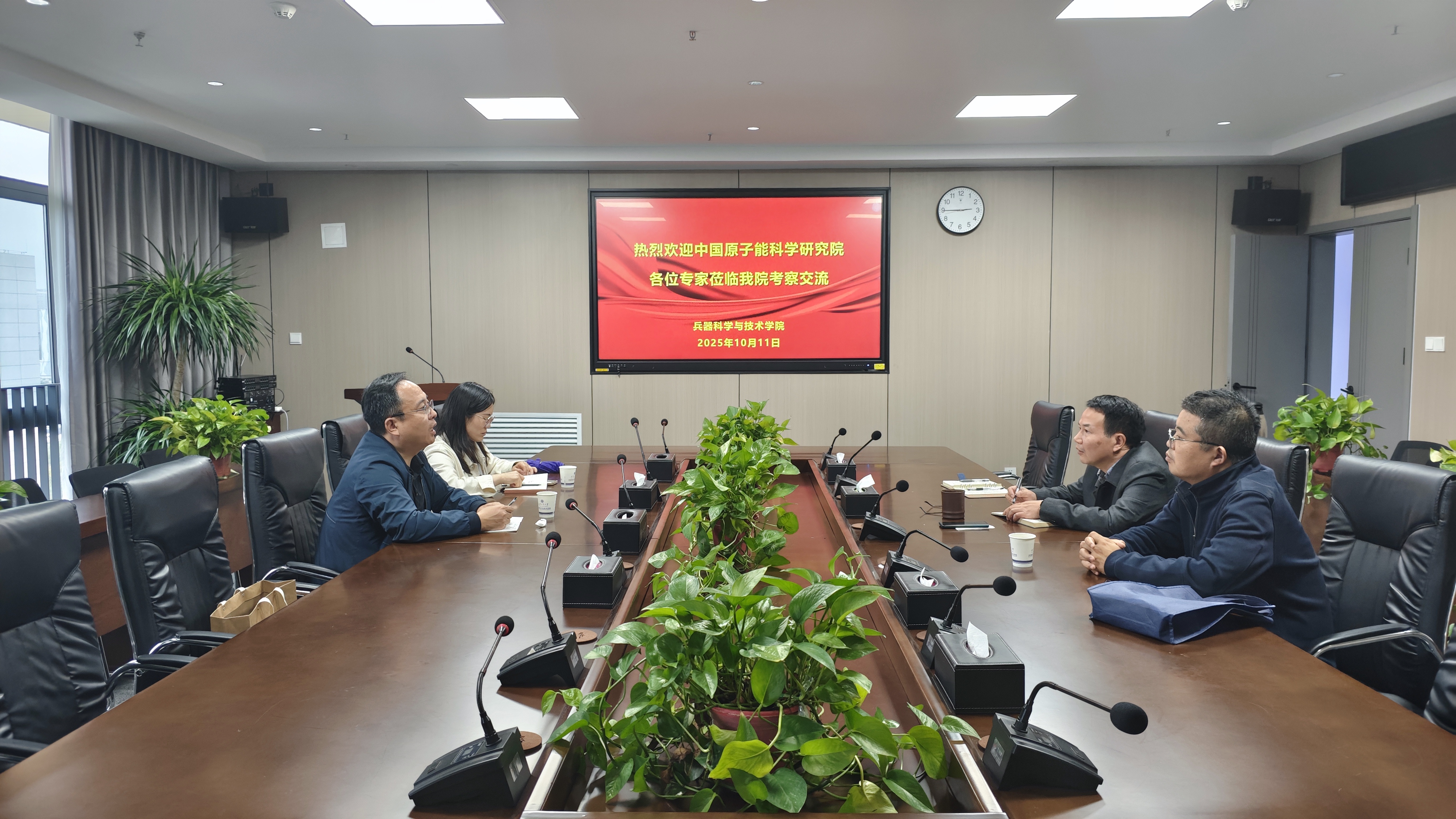 蔡長(zhǎng)龍對(duì)呂海雷一行的到訪表示歡迎,并對(duì)學(xué)院的發(fā)展歷程、學(xué)科特色和科研優(yōu)勢(shì)進(jìn)行介紹,表示學(xué)校兵器專業(yè)與中國(guó)原子能科學(xué)研究院的科研方向高度一致,合作前景廣闊,具有挖掘科研合作的潛力,雙方在前沿技術(shù)研究、技術(shù)聯(lián)合開(kāi)發(fā)及產(chǎn)品成果轉(zhuǎn)化等方面的合作能夠打造產(chǎn)學(xué)研融合的創(chuàng)新高地。