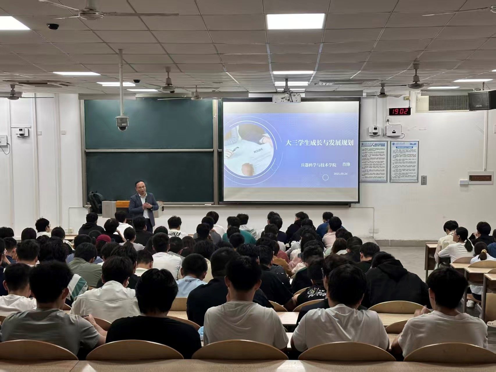 為進(jìn)一步深化立德樹(shù)人根本任務(wù),助力我院學(xué)生在大學(xué)生涯道路上邁出堅(jiān)實(shí)的步伐,明確未來(lái)目標(biāo)。2025年9月24日晚,兵器學(xué)院在教1-104舉辦題為《大三學(xué)生成長(zhǎng)與發(fā)展規(guī)劃》講座,講座由兵器學(xué)院院長(zhǎng)肖鋒主講。